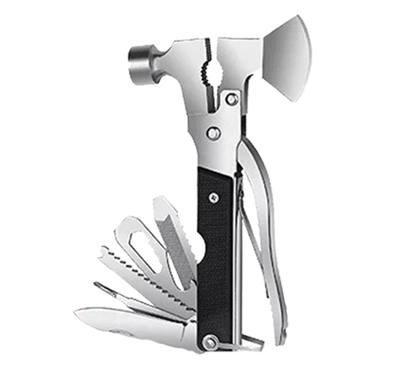 Unelte grele: Axe/ciocan multifuncțional și lopată pliabilă.