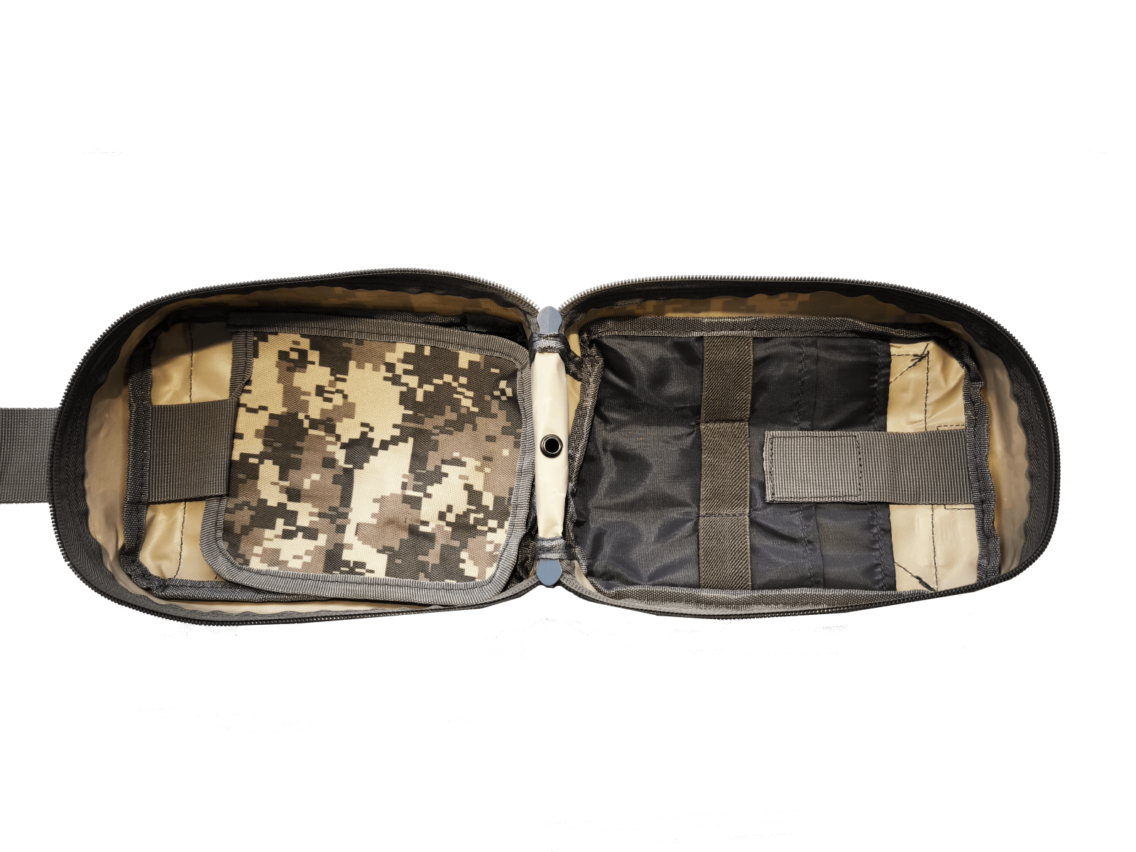 Benzi elastice și compartimente multiple care mențin uneltele (lanterne, bricege, baterii) fixe, prevenind zdrăngănitul sau deteriorarea lor.